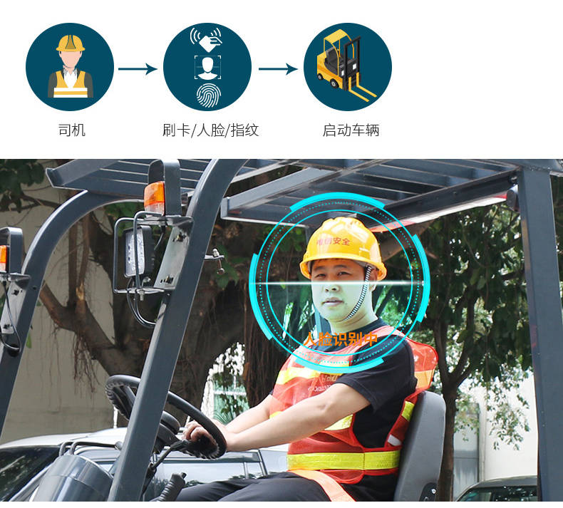 和“裸奔”叉车不同的是,装载唯创安全叉车智慧管理系统后,每台叉车相当于配备了一名“电子监管员”——只有叉车操作证有效的驾驶员,通过车载人脸识别系统验证后,才能解锁并启动叉车,否则,叉车就无法启动作业。这样一来,可以从源头上杜绝无证作业现象。而对于叉车司机不系安全带、超速行驶、货物遮挡视线仍正向行驶等违法违规行为,智慧管理系统也可以通过不定时抓拍功能进行动态监管,一旦发现违法违规行为,系统在抓拍取证的同时会发出预警提示,并上传数据至管理平台。