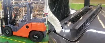 而经丰田改造的特殊型号,从机器的后部和底部吸入冷却空气,防止散热器盖板的堵塞,也降低散热器盖板的清扫时间。