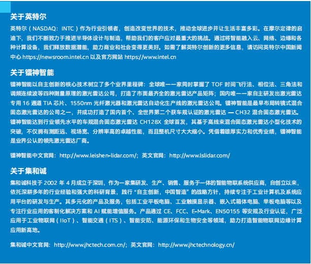 此次镭神智能与英特尔及集合诚的合作,加速了相关产品与解决方案的研发,有利于促进基于车联网的车路协同方案早日实现商用。