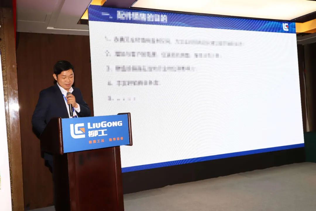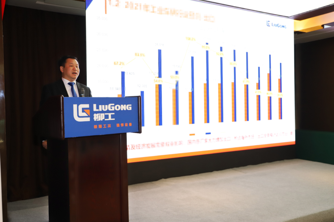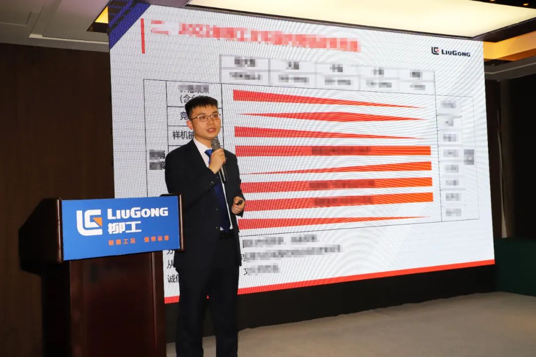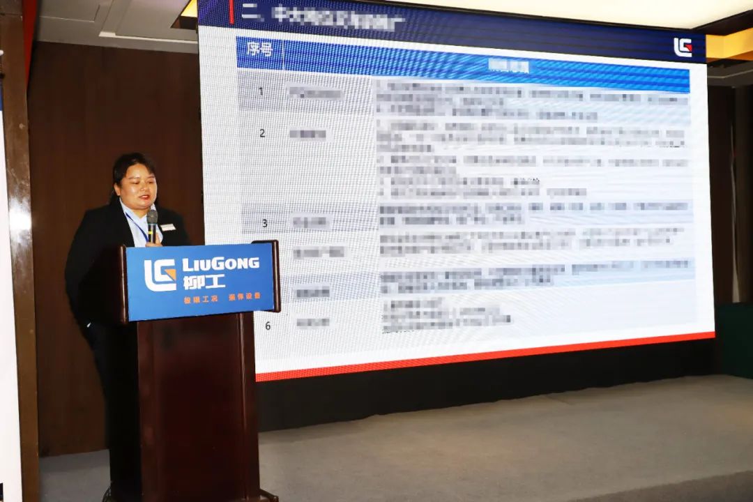 国内营销总监岑圳林做《柳工叉车2021年营销工作总结及2022年营销工作思路》,从产品结构、市场参与度、关键客户变化及客户发展、样机周转、渠道变化、信用及服务、当前经销商队伍能力状况等与会经销商就2021年销售运营工作进行全面复盘,在行业竞争如此剧烈的情况下实现销量增长,取得较大突破,但距离行业增长仍有一定差异。在此基础上,发布2022年21000台的基本目标,并明确从管理基础、营销能力、产品结构、渠道变革等四大重点方向,确保2022年营销经营目标的实现,夯实基础,为2025战略的实现做好充分准备。