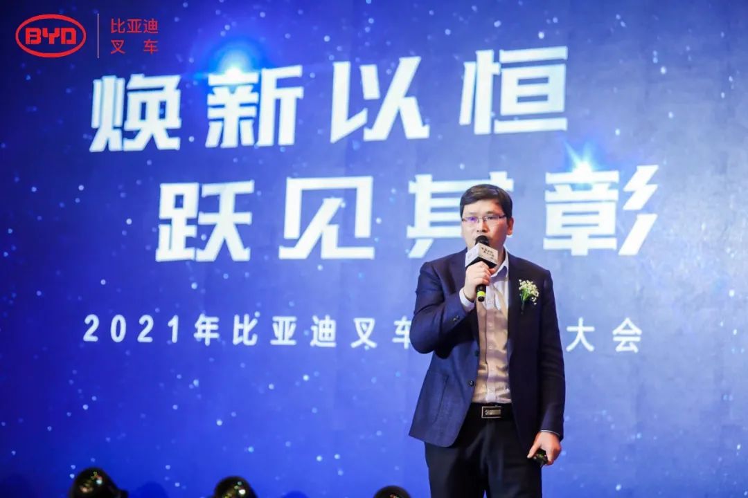 随后比亚迪叉车国内经销总监王岩先生对2021年国内经销情况进行了分享。