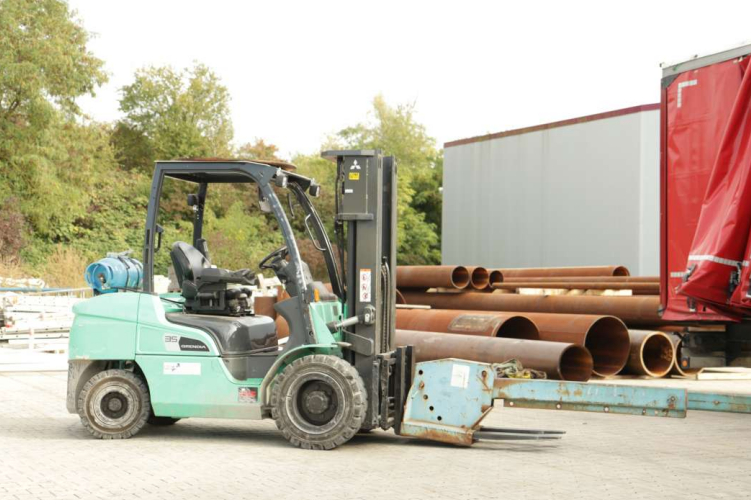 三菱FG20有长的货叉,所有的叉车都可以配备一个起重机臂。有了这个附加设备,燃气叉车可以更灵活地使用。