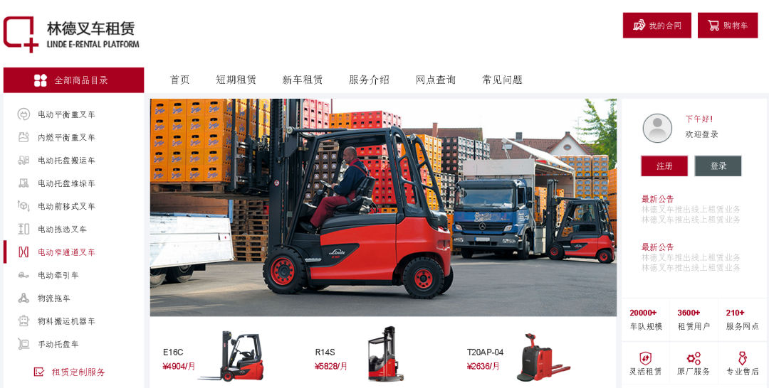 林德将叉车租赁场景从传统的线下,搬运至操作更快捷、体验更舒适的线上。“注册”后,即可体验林德从“选定车型→提交订单→签约协定→付款开票→设备发货”的全流程一站式服务,可谓多款车型一应俱全、车源查询快速精准、合同在线一键签约,满足各行业客户的用车需求。