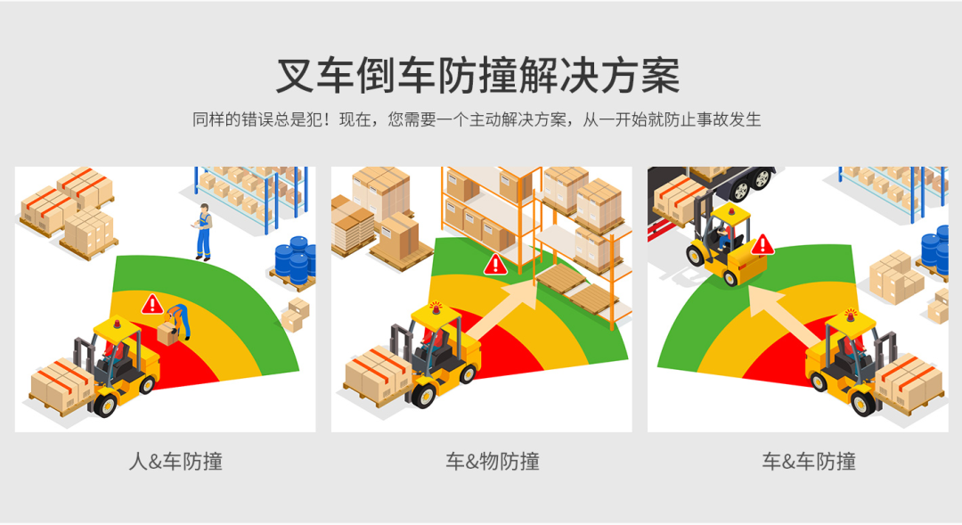 公司核心产品系列——叉车防撞系统深度运用AI 视觉算法、雷达感应技术与UWB测距技术,覆盖叉车、正面吊、装载机等机械设备的智能防碰撞、超速报警、重量管理、车队管理等安全服务,精准构建“人、车、货、场”全场景风险预警与防护。