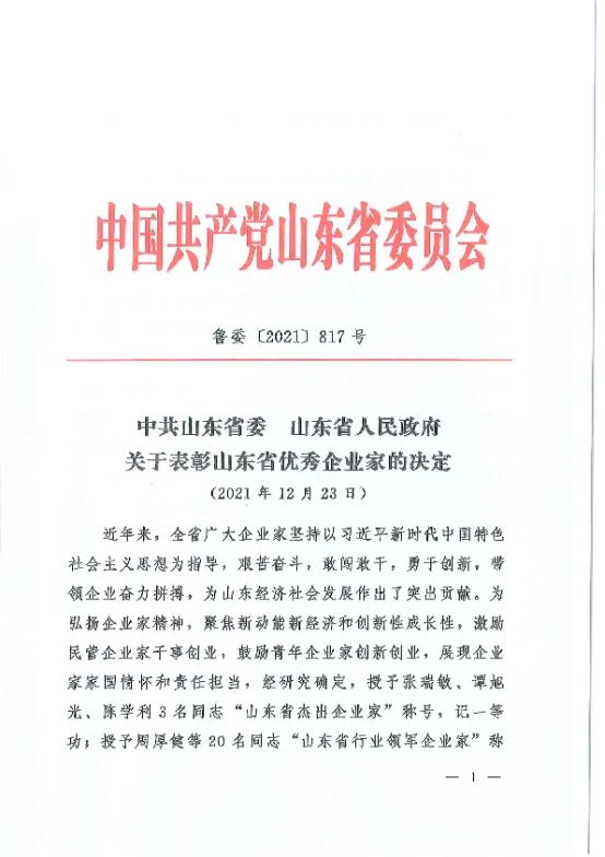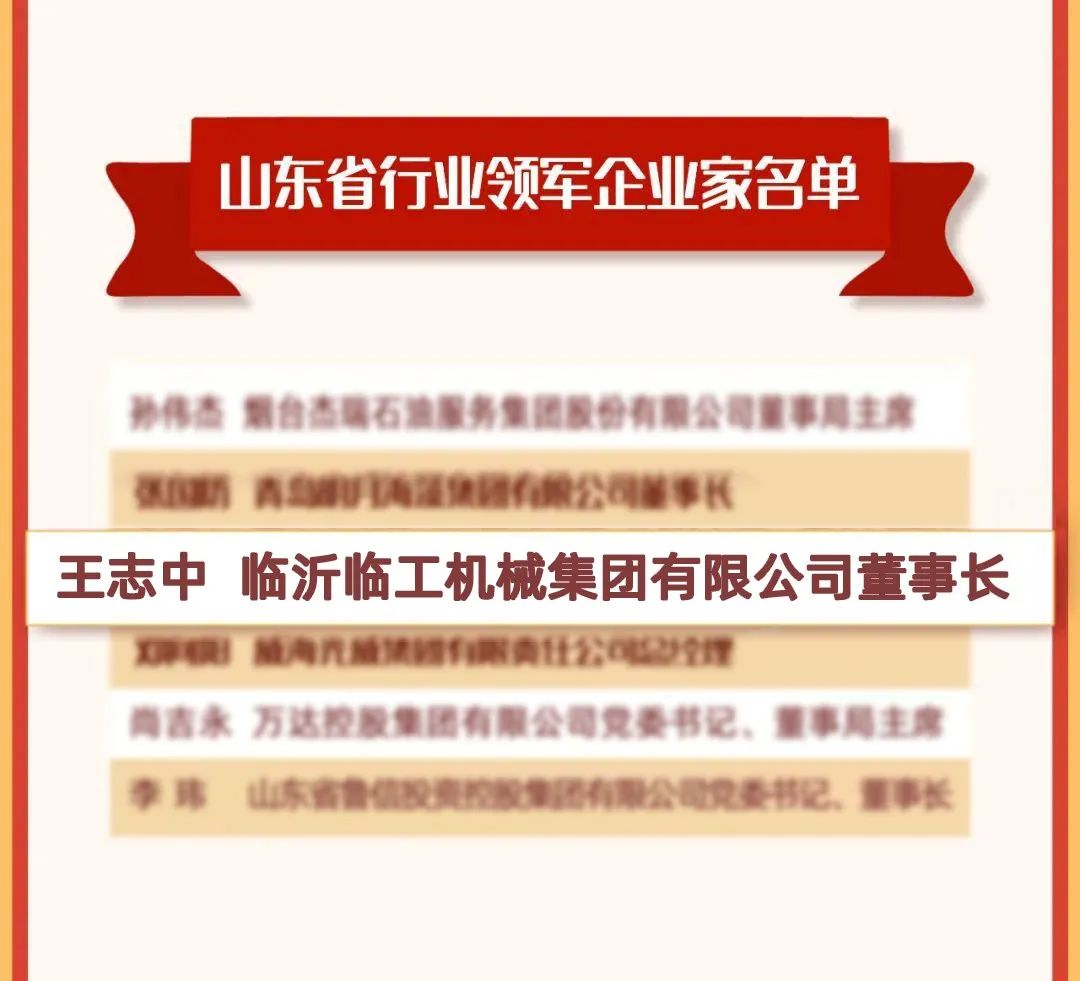 为深入贯彻习近平新时代中国特色社会主义思想,弘扬企业家精神,聚焦新动能新经济和创新性成长性。近日,山东省委、省政府发布了关于表彰山东省优秀企业家的决定,临工集团董事长王志中荣获“山东省行业领军企业家”称号,记一等功。