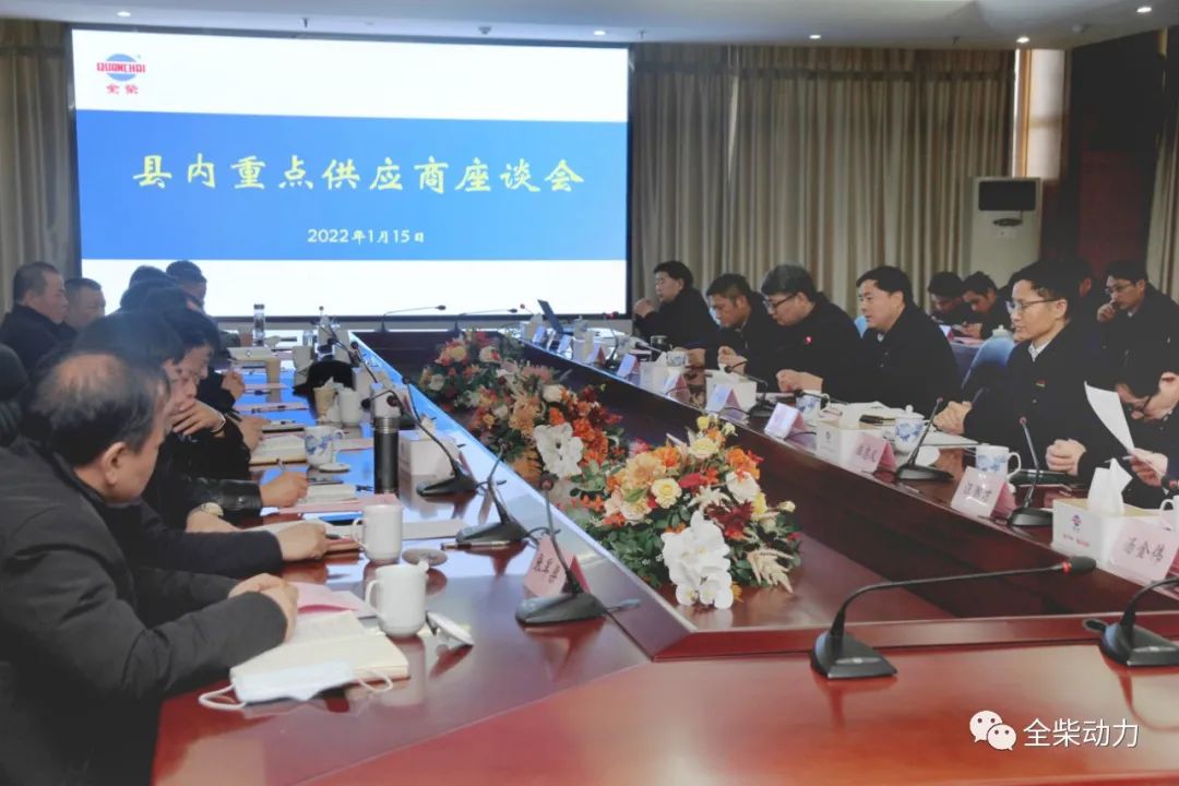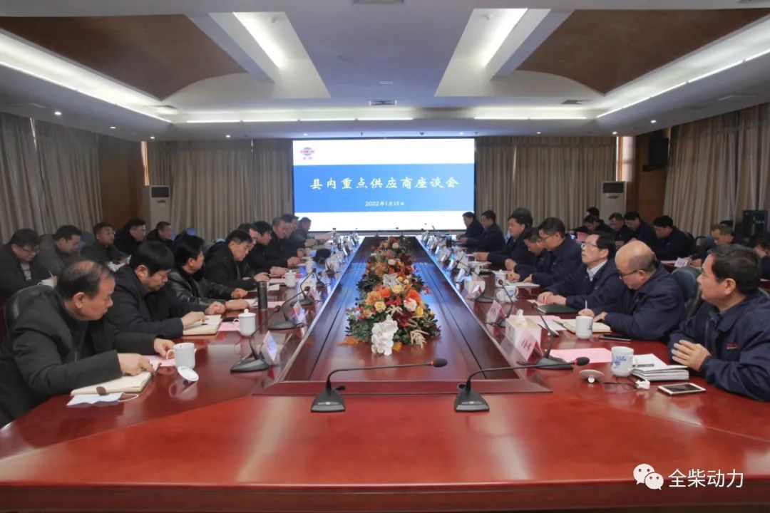 2022年元月15日上午,全柴集团2022年县内重点供应商廉洁座谈会在全柴二号会议室顺利召开。集团党委书记、董事长谢力、股份公司总经理徐玉良及各主要业务部门分管副总、部门负责人与16家县内重点产品供应商负责人参加座谈,会议由集团分管采购副总经理黄长文同志主持。