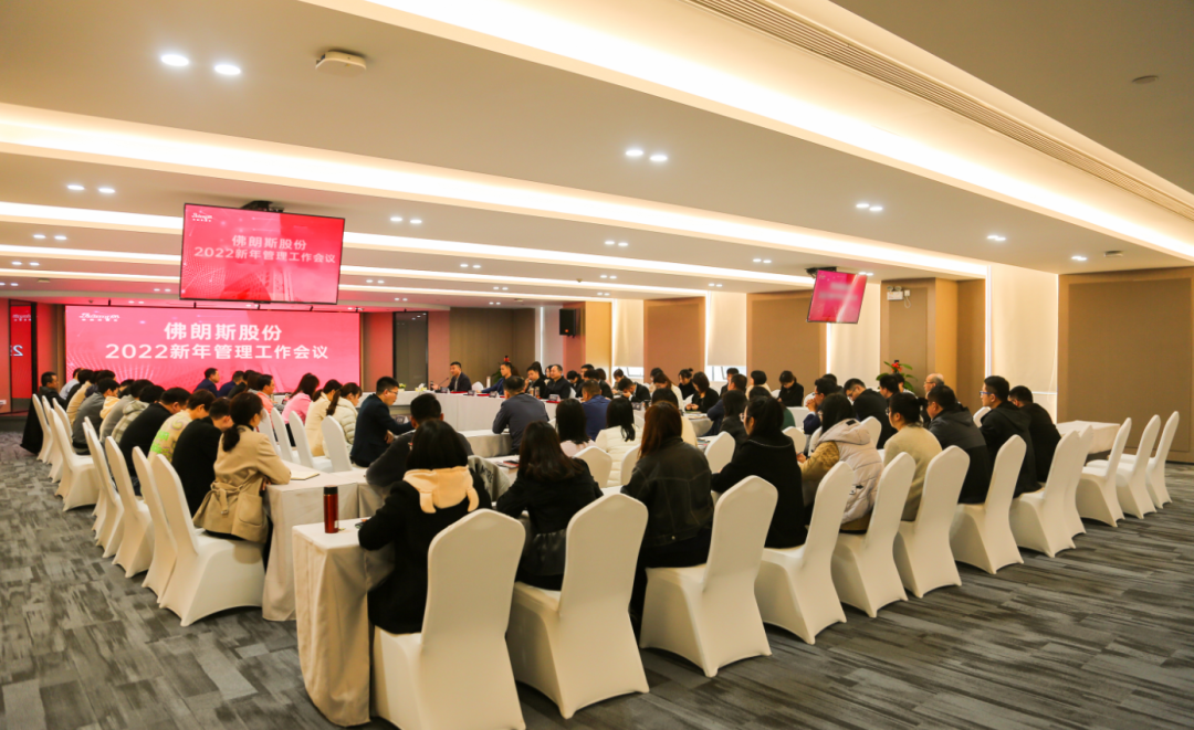 2022年1月22日,佛朗斯股份2022新年管理工作会议在广州总部12楼报告厅圆满召开。公司董事长侯泽宽先生、总经理侯泽兵先生及公司后台科长级以上管理干部齐聚一堂,共话发展续辉煌。