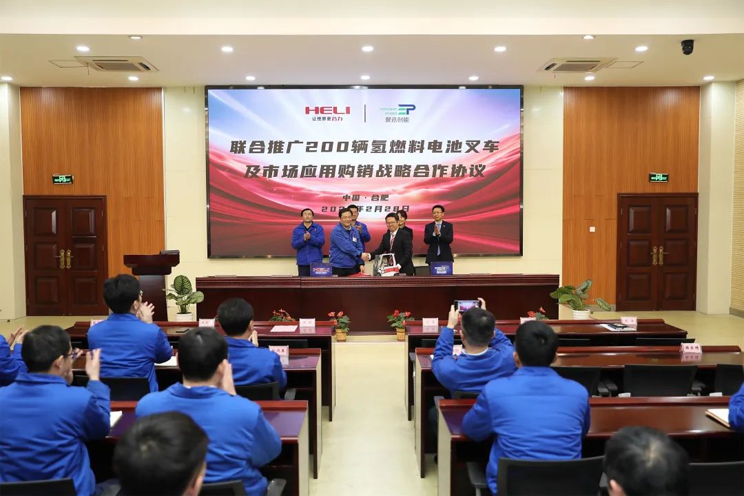 合氢能之力,建设美丽地球。2月28日下午,安徽合力股份有限公司与上海翼迅创能新能源科技有限公司在合肥举行联合推广200辆氢燃料电池叉车市场应用购销战略合作签约仪式,这标志着双方合作进入新的发展阶段,将加速我国工业车辆低碳化、氢能化的进一步发展。