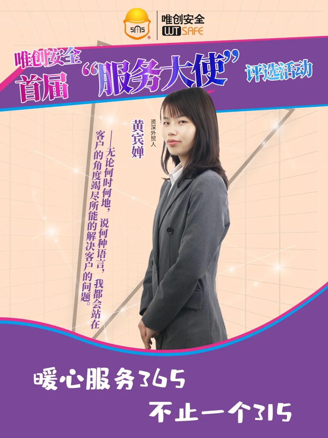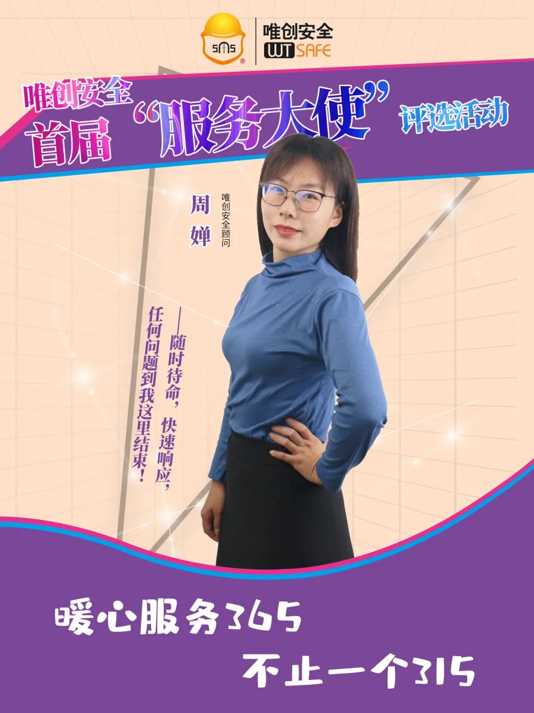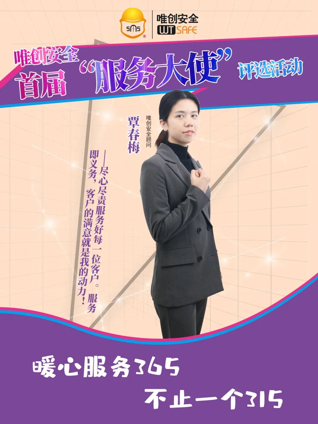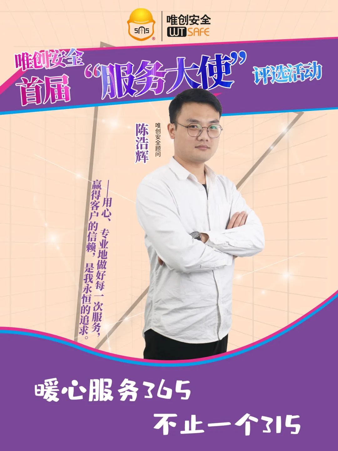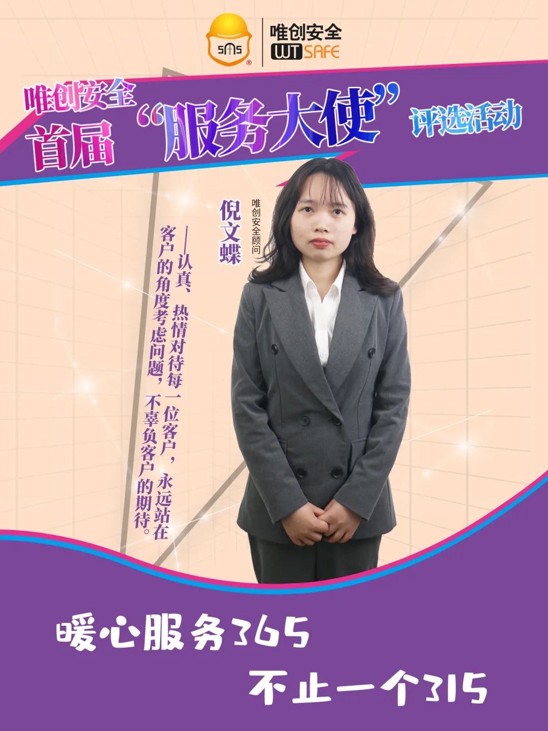 作为唯创的安全顾问,我坚信:服务至上,责任当“先”。服务要注重细节,要让客户感受到我们的一举一动、一言一行都很用心。同时,要学会理解客户,认真聆听客户的真实需求,主动站在客户的角度考虑问题,真心实意地为客户解决问题。