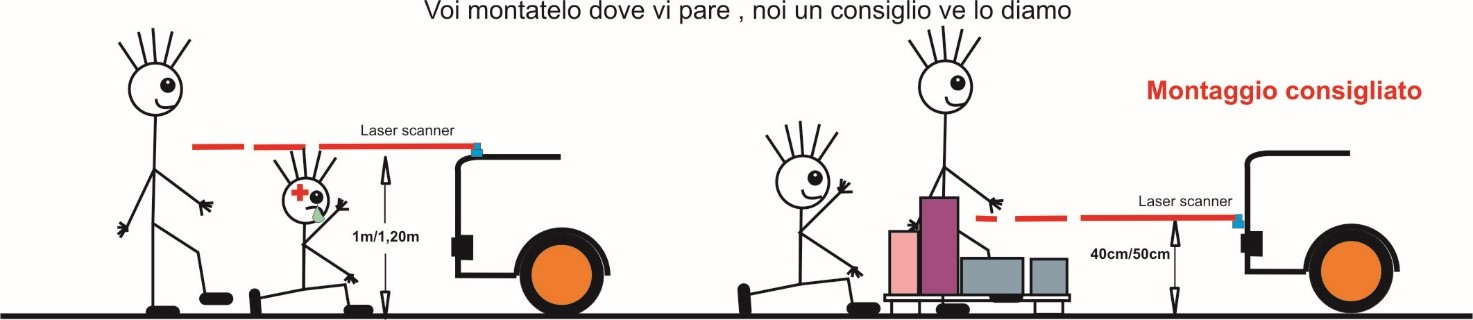 但是,需要根据客户的使用要求,确定传感器在车辆上的固定位置,特别要注意高度。最常见的应用是将传感器安装在小车后镇流器上,高度约为40 厘米,以使其能够拦截地板上的障碍物。