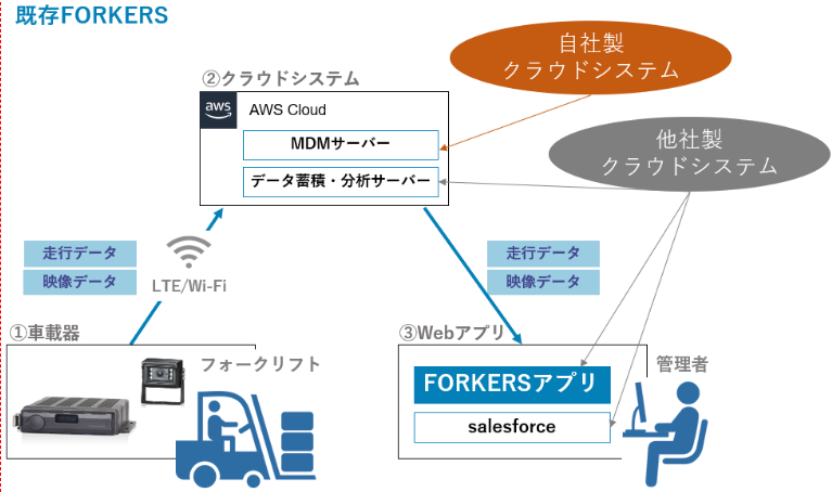FORKERS®通过以下方式解决这些问题:(1)自动收集数据,大大降低运营成本;(2)不需要用网络应用程序建立复杂的环境;(3)用其坚固的底盘确保长期牢不可破的运行。