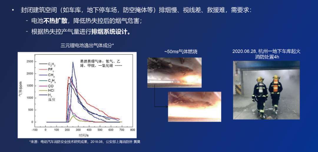 针对新能源汽车的安全问题——现在生活中越来越多的封闭建筑空间,如车库、地下停车场、防空掩体等,这些封闭空间排烟慢、视线差、救援难度大,对电池系统安全性也提出了更高的要求。