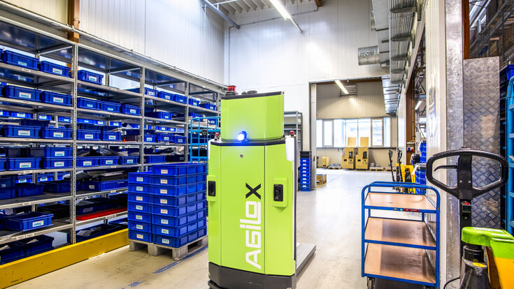 Agilox 已经为仓库提供了自主移动机器人,这提供了 Kion 在一个项目中研究的各种可能性。图片来源:Agilox