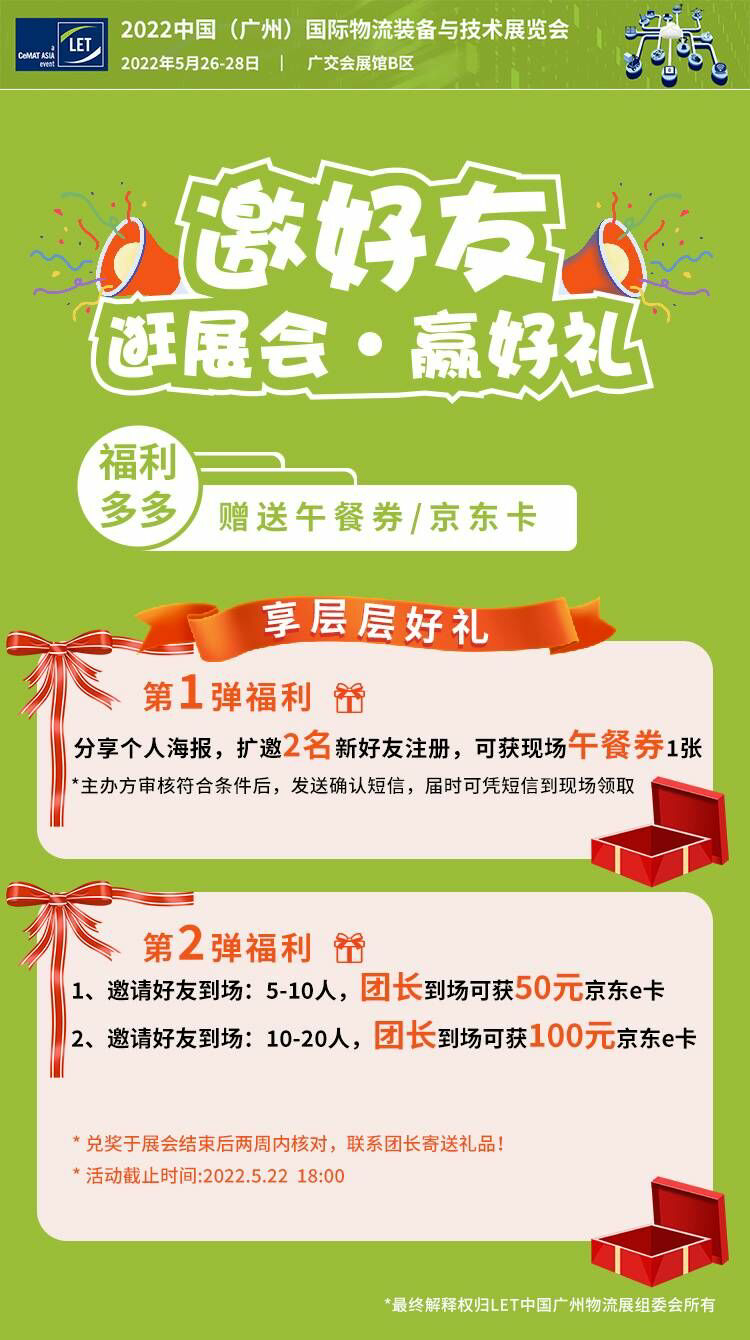 聚焦"智慧工厂,智慧物流",2022年5月26日-28日,规模升级的2022中国(广州)国际物流装备与技术展览会(以下简称:LET2022)将于中国进出口商品交易会展馆B区再次起航!