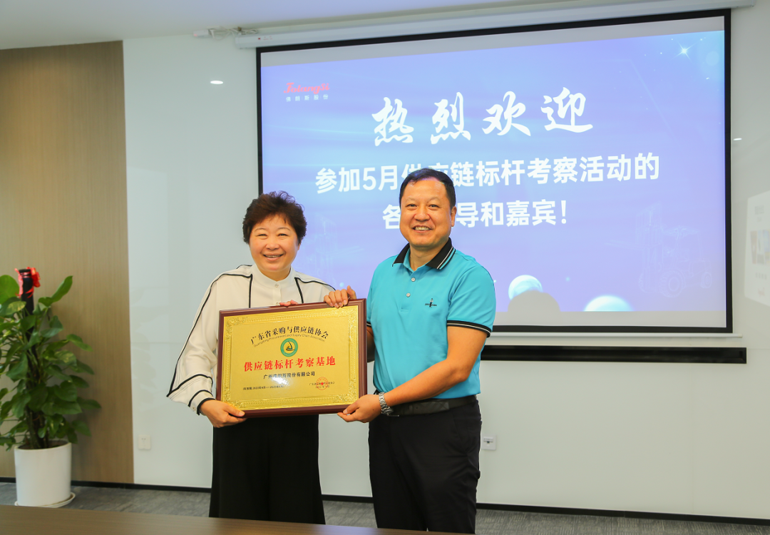 会上举行了简短又不失隆重的“供应链标杆考察基地”授牌仪式,协会秘书长魏祁蔚为佛朗斯颁发了荣誉牌匾。