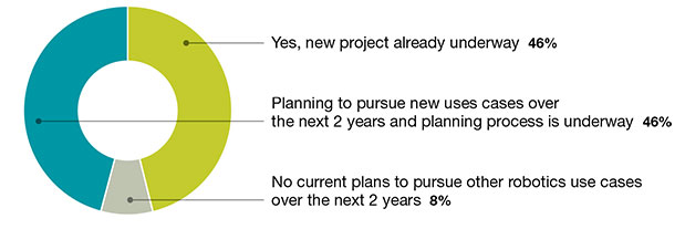 其他人则走得更远,12% 计划在之前成功测试的基础上推出更多机器人,2% 计划在现场生产环境中实施他们的第一个机器人,2% 试点机器人。其余的人要么不知道,要么说他们在做不同的事情。