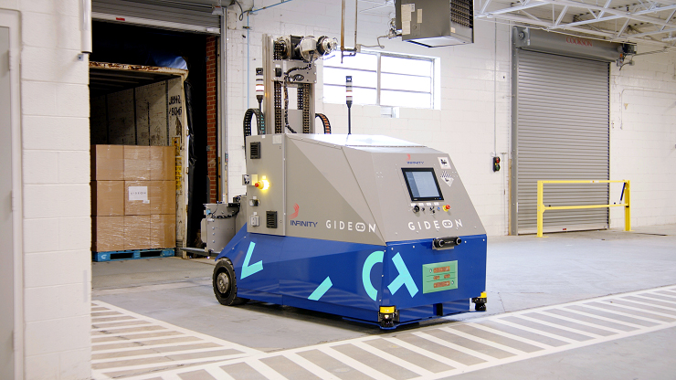 新的Trey装载解决方案结合了吉迪恩(Gideon)由AI和3D视觉提供支持的专有自研技术,用于智能工作流程协调的用户友好型软件,以及Infinity Machine & Engineering Corp.强大的专用底盘。