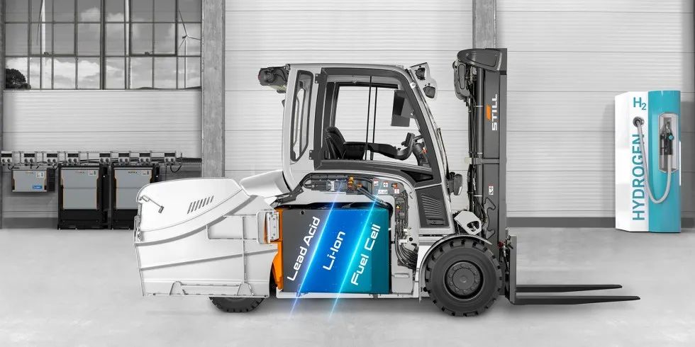 这种能源系统的特殊之处在于,电力是在车内产生的,不再来自于插座。Dyrk Draenkow说:"当我们谈论内部物流中的燃料电池时,我们是指所谓的电池替代模块。这在尺寸、重量和形状方面与特定的电池槽相对应。这意味着,现有的铅酸电池或锂电电池可以用该模块一对一地替换。在这样一个模块中,燃料电池所需的所有部件都被组装起来"。一个所谓的完整系统首先包含燃料电池本身,即所谓的堆栈。这些装置将储存在氢气中的能量转化为电能。这些能量被用来给集成锂电电池充电,为车辆提供持续的动力。该系统还包括一个带有加注颈的高压氢气罐和其他部件。