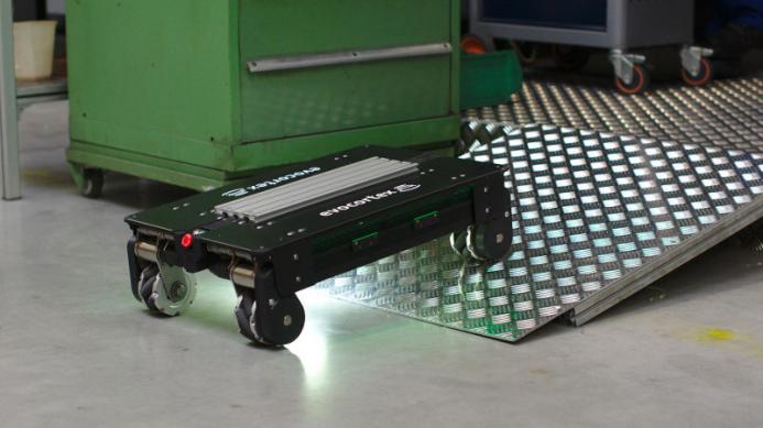 -由于微型电机的强大动力,EvoRobot 最多可以运输 200 公斤。Hubert Bauer 解释说,很快就会有更大的负载。-也可以在高达 5 度的斜坡上以每秒一米的速度运输。