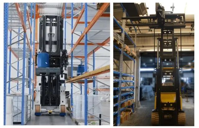 当使用窄通道布局或高货架等方法时,像双侧和三侧货叉属具这样的定制产品消除了叉车或AGV为接近仓库货架系统而转向的需要,然后将货物放到货架上。属具使货叉能够向左或向右转90度,这使叉车能够非常精确地将货物操纵到过道的任何一侧。双边货叉水平地穿越车厢,根据需要从左侧或右侧伸出。这种功能使车辆可以简单地沿着仓库过道直行,根据托盘的大小,可以小到60英寸或1530毫米宽,并从车辆的任何一侧将货物放到货架上--无需转弯。在密集的仓库设施中,这两种窄通道解决方案都可以帮助节省时间和提高效率。