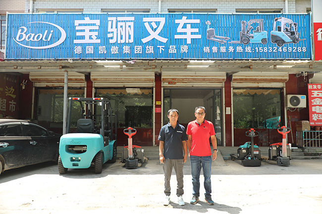 韩总首先介绍他与宝骊结缘的历程。早在2008年起,韩总在石家庄供职于国内一家知名叉车制造商从事维修工作,2012年开始介入叉车销售业务,2016年接触并销售宝骊叉车,2018年离开前老板来到河北直管市定州开始代理宝骊叉车业务。他说那年离开石家庄来定州确实是下了很大的决心,就叉车业务来老说,自己将去开发一片出处女地,其中的艰辛可想而知。然而决心、定力驱使,加上在凯傲宝骊的区域销售代表不断打气和鼓励下,于是他决心在定州扎根下来,于2018年注册成立了骊泽商贸,主营业务为宝骊叉车的销售及维修服务。