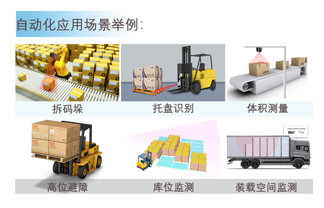 Vzense 为 AMR、人数统计、人脸识别、服务机器人导航、物流中的体积测量、仓库中的货物检测、AR/VR 中的手势识别、图形辅助等应用开发了大量定制的 ToF 产品、软件和系统。工业自动化、汽车驾驶员检测等。