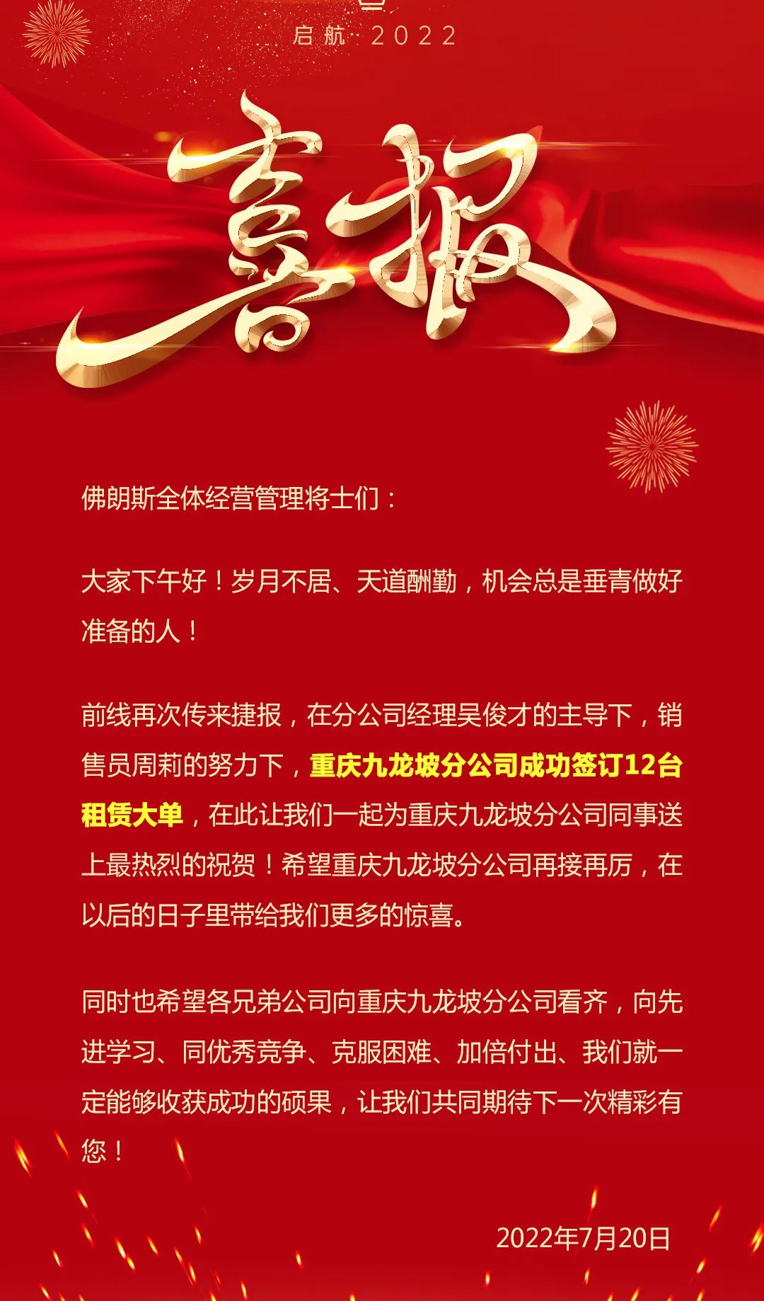 佛朗斯凭借长期深耕于场内物流设备行业所积累的丰富经验,积极培育和引导客户通过租赁服务的方式获得场内物流设备的使用权,凭借物联网创新和数字化驱动的线上智能管理平台,以及遍布全国的服务网点组成的线下营销服务网络系统,真正建立了面向企业“线上+线下”服务的商业模式,最终实现了模式创新。
