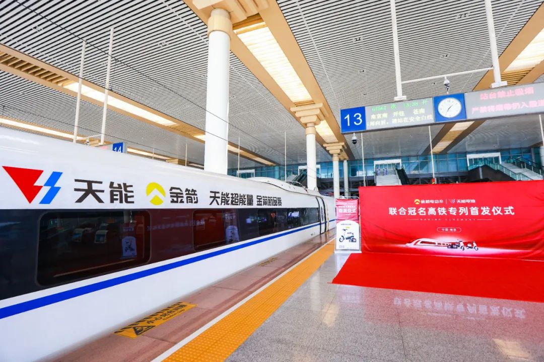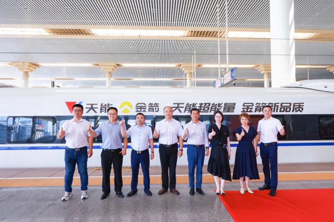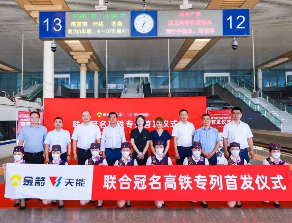 2022年8月6日,“天能超动力 金箭新品质”高铁冠名列车首发仪式在南京南站隆重举行。这趟承载天能和金箭共赢理想,助力行业高速发展的列车,将积聚传播之势,拉动双方品牌合作发展新引擎。