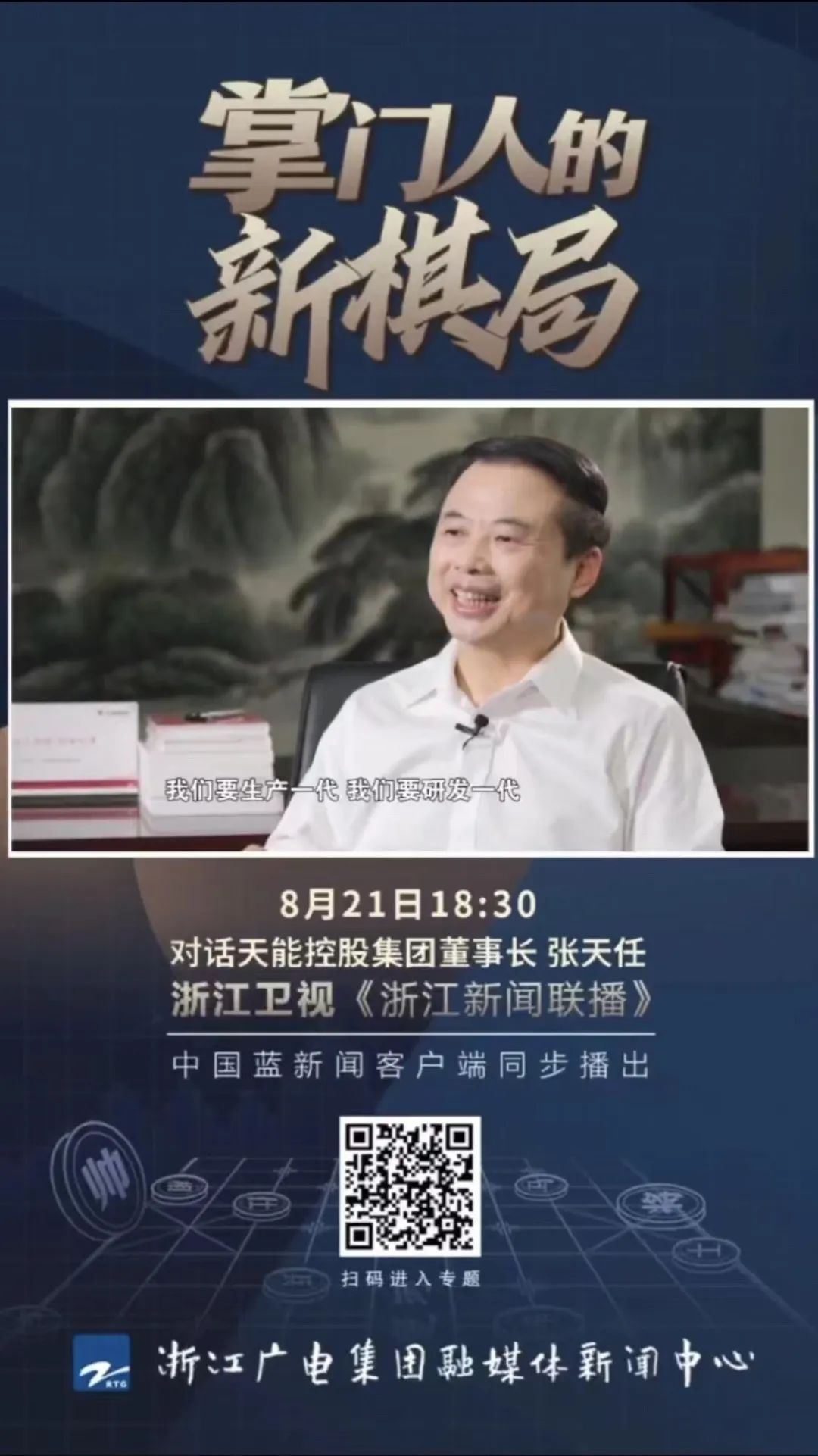 近日,浙江卫视《浙江新闻联播》推出“掌门人的新棋局”系列报道,其中新闻头条用了近5分钟的时长,报道了天能控股集团董事长张天任谋篇新棋局,天能发力新赛道的新闻。