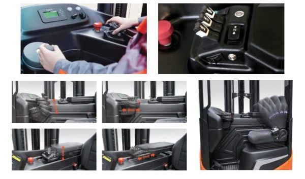 OPX 33有一个集中的控制台,用指尖的比例控制,提供流畅和准确的操作。高速提升和下降提高了生产力。方向盘采用EPS-电动助力转向系统,中央控制台可以在各个方向自由调整。高悬挂、完全可调的座椅减少了对驾驶员的振动,而汽车式仿生弧形靠背减少了驾驶员的疲劳。宽敞的、符合人体工程学的驾驶室有足够的脚部空间,其人性化的设计确保了各种体型的操作人员在整个工作班次中的舒适性。