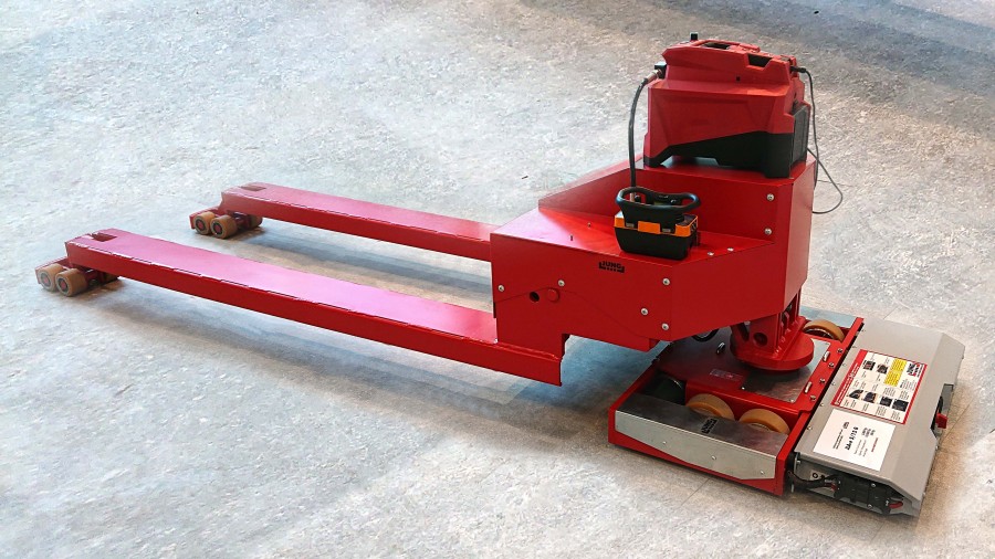 与所有电力驱动的运输车底板一样,该车可以通过无线电遥控进行操作,可以用单手或双手直观地操作。当然,也可以独立于叉车使用小车。这增加了应用的可能性,因为有了非耦合电动小车,即使是尺寸有偏差的特殊机器也能以成熟的方式移动。