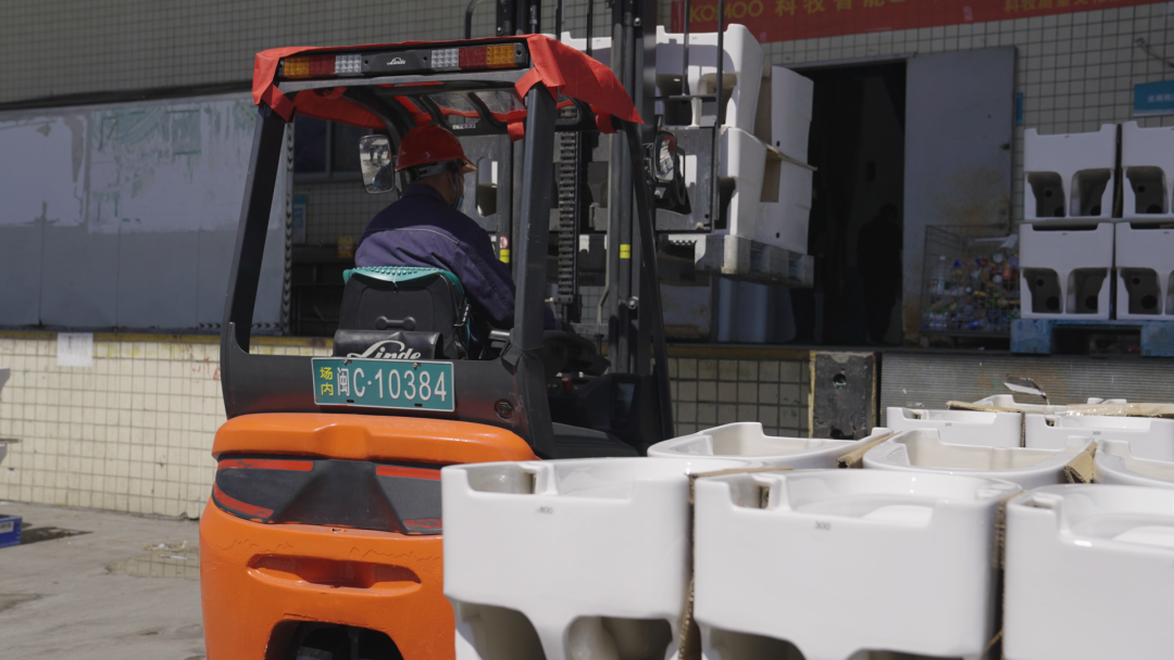 在九牧集团工厂内一个成品的诞生到流向市场,除了出色的产品品质更离不开仓储物流的高效运转。卫浴用品作为重型材料,货品大,易损坏,对于物流搬运设备是一个严峻的挑战。在九牧集团物流中心内,包括电动平衡重叉车、电动托盘搬运车、电动托盘堆垛车等数百台林德叉车为其物流作业提供有力支撑。林德叉车驱动性强、操控灵活、以强劲动力,全面提升工厂内产品生产、出库、装车、发货的搬运效率。