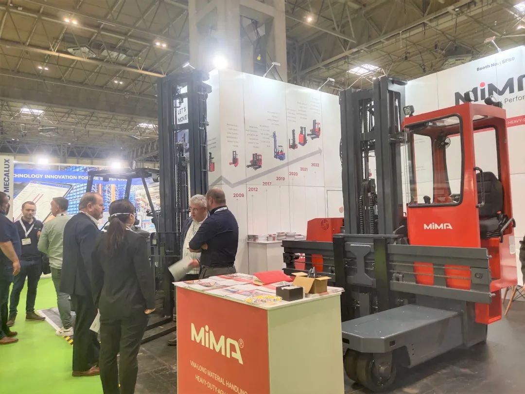 本次展会MiMA为欧洲市场带来了一系列安全可靠、智能高效、绿色环保的中国仓储物流解决方案,展出产品有MJ系列铰接式叉车、MCC系列人上型三向叉车和MQC系列全向叉车家族成员。展会期间,前来观展、了解产品的国外客户络绎不绝。