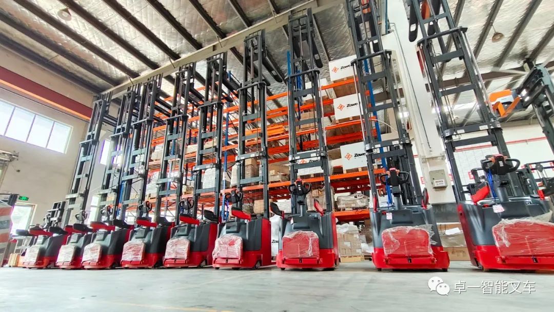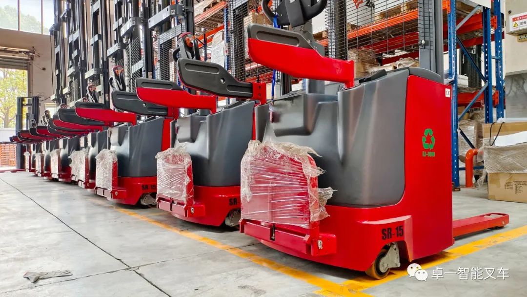 造成仓库效率低下的原因之一是物流设备利用率低,该客户为知名仓储企业,在库房中应用卓一智能叉车多台站驾式电动堆高车,以完成库内物料高效装卸、运载的需求。