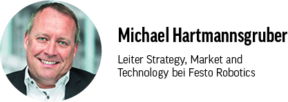 (2)未来,我们将依赖于增加人机协作——尤其是在中小型公司中,许多繁琐的工作步骤仍然是纯手动完成的。为了在那里建立机器人,重要的是协作机器人操作“简单”——在调试方面,尤其是在编程方面。此外,灵活性是工业机器人的趋势之一:一旦协作机器人可以快速用于各种任务,购买就变得经济,因此对中小型公司来说很有趣。我们的 Festo Cobot 满足了这一要求:它仅重约 17 公斤,并且——作为市场上的第一款——具有集成控制柜。重量轻,空间要求小,就使用场所而言,最大的灵活性。然后,简单的编程确保它也可以快速用于不同位置的不同任务。