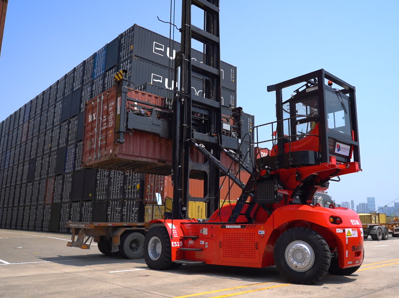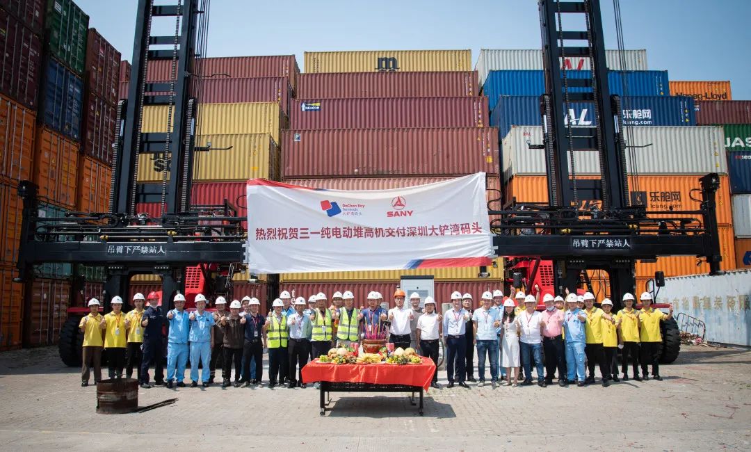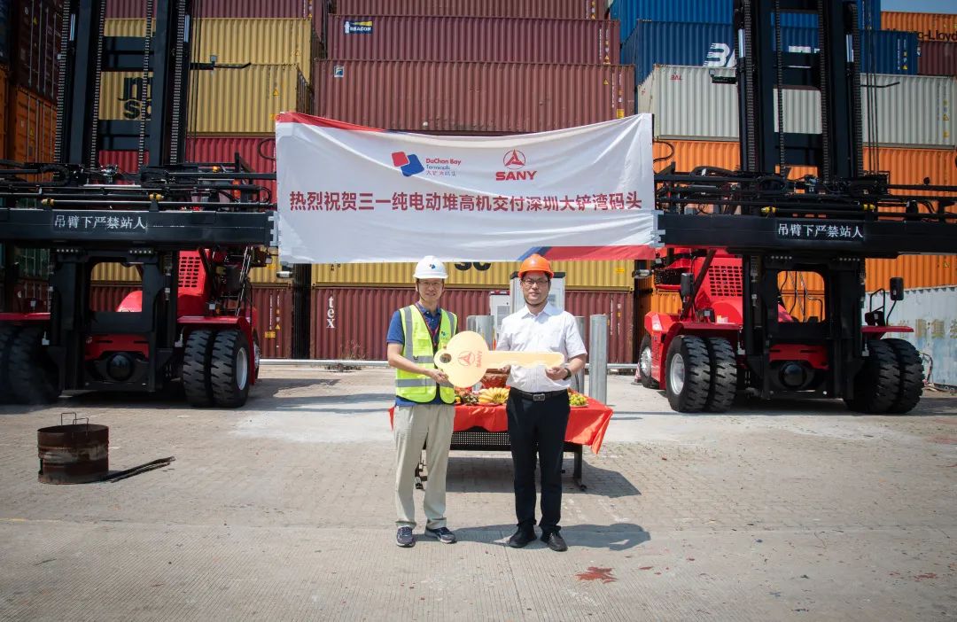 近日,三一向深圳大铲湾码头交付首批SDCE90K8纯电堆高机,助力客户提速节能减碳工作。SDCE90K8采用全电力驱动,是大铲湾码头,乃至深圳市各码头中首批投入使用的纯电空箱堆高机。