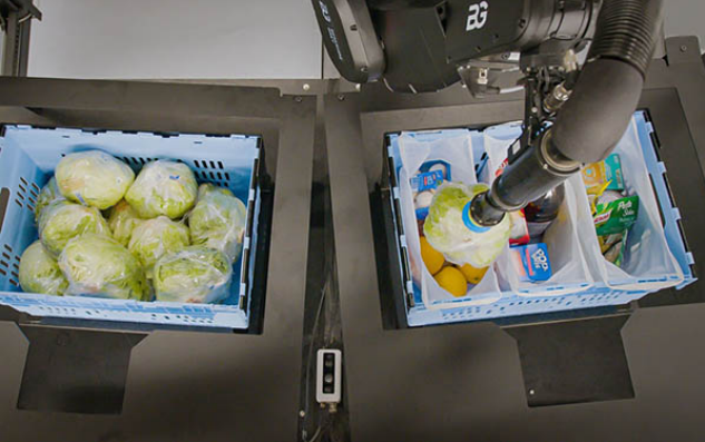 伯克希尔-格雷表示,其智能自动化(此处展示的挑选杂货)有助于缓解仓库工人日益扩大的代沟。