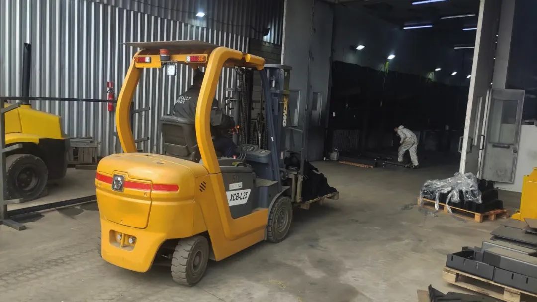 在生产现场,徐工叉车在机手的娴熟操作下,面对高强度作业游刃有余,灵活身姿在生产设备与物料间穿梭自如,精准、高效地进行着搬运任务。