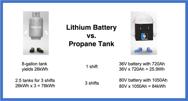 锂电池消除了这些障碍,其带来的好处是减少了运营成本和污染。在同样大小的电池组中,锂电可以储存比铅酸电池多得多的能量,并且可以在休息和午餐时快速充电,以持续完成每天的多班工作。