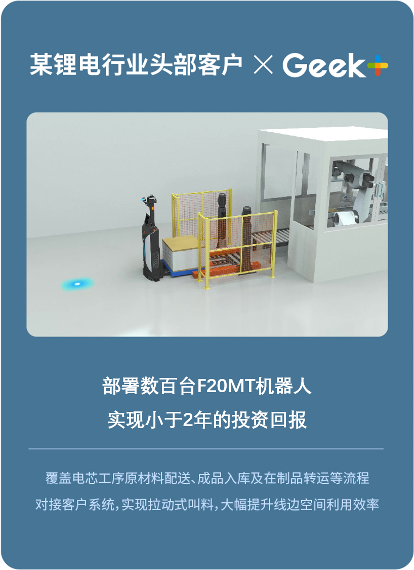 全球AMR 引领者极智嘉(Geek++)在2018年便开始布局智能叉车机器人,抢占蓝海市场。极智嘉拥有堆垛型和平面搬运型两种叉车产品方案,不仅能灵活对接产线,满足线边场景的高效作业,还能实现仓库内的各种平面搬运需求。目前,极智嘉已与锂电、电子、汽车等行业头部客户达成合作,实现项目落地。
