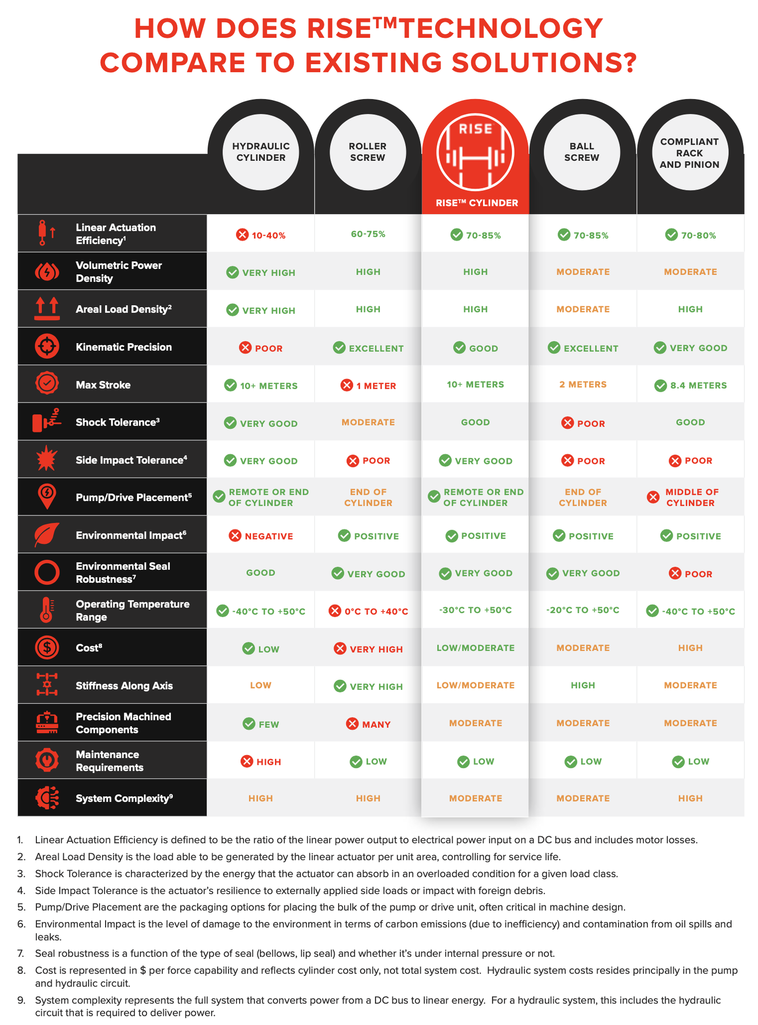 RISE™Cylinder 只需应对电机和齿轮箱损失,即可提供 70% 至 85% 的整个系统效率。