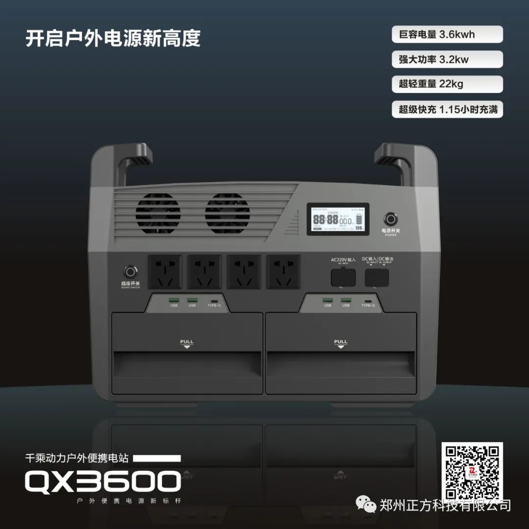 “现在很多品牌加入到了移动储能行业中,可以说形成了一个不小的品类,行业竞争也加剧了。”业内人士称,户外电源品牌突飞猛进,一些知名科技巨头也开始推出便携式储能产品。因此,移动储能行业或将进入多元化发展的新格局。我们搜索各大平台网站,可以发现许多款户外移动电源在售卖。而成立于2005年,具有多年智能锂电池应用与研发、生产经验的正方科技上半年也推出了一款户外电源爆品——QX3600新能源便携电站,产品问世就迅速得到了市场的认可,那么,这款户外移动电源的优势比起市场上那么多产品,其多项堪称新能源电源领域的“黑科技”到底牛在哪里呢?黑科技之一:电容量牛,一机带走3.6度电