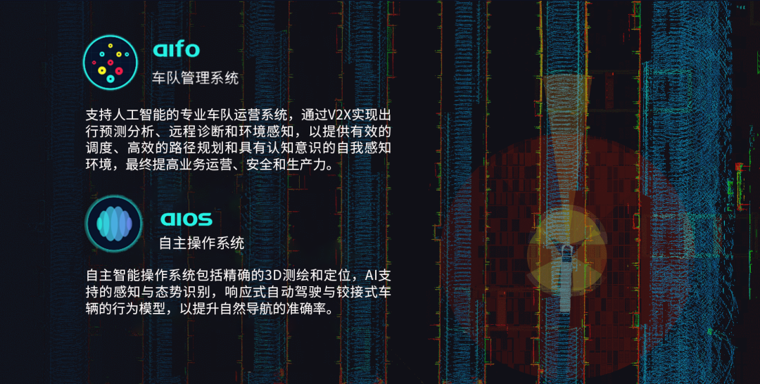 在AIOS中态势感知通过多模型方法和感知安全性实现了冗余感知,为实际交通混合提供环境危险性分析和推理;多模型3D映射和定位,为端口提供具有故障安全功能的精确定位,客户无需对作业环境进行更改,就可以实现安全智能的自动驾驶。