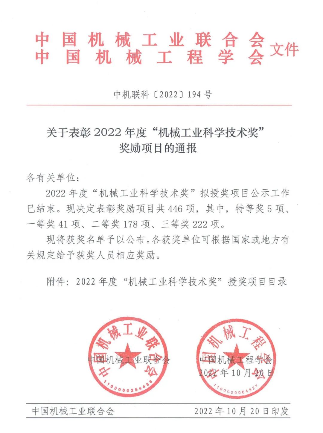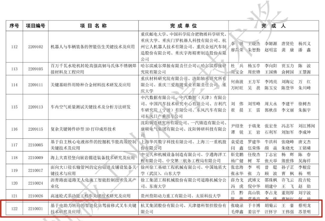 日前,2022年度机械工业科学技术奖获奖名单正式揭晓,杭叉集团股份有限公司牵头申报的“基于电助力转向的智能化站驾前移式叉车关键技术研究及应用”项目荣获机械工业科学技术奖科技进步类二等奖。