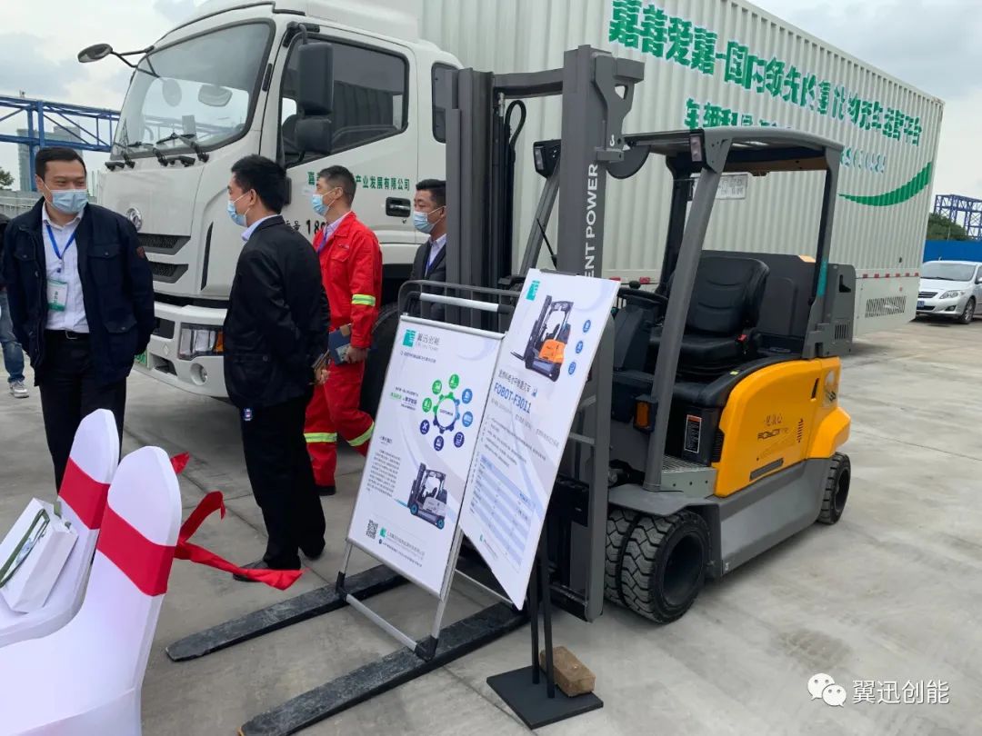 10月28日上午,上海化工区氢能车辆示范应用现场对接会于化工区浦江气体二期工厂隆重举行!翼迅创能携氢燃料电池叉车FOBOT-F3011亮相对接会现场。