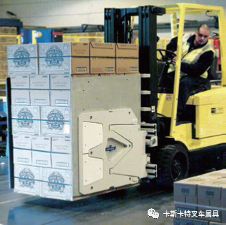 推拉器通过用滑板取代托盘,来对货物进行装船、收货和入库等作业。采用滑板可省去托盘的购买,维护,报废以及存储费用,同时可提高空间利用率。