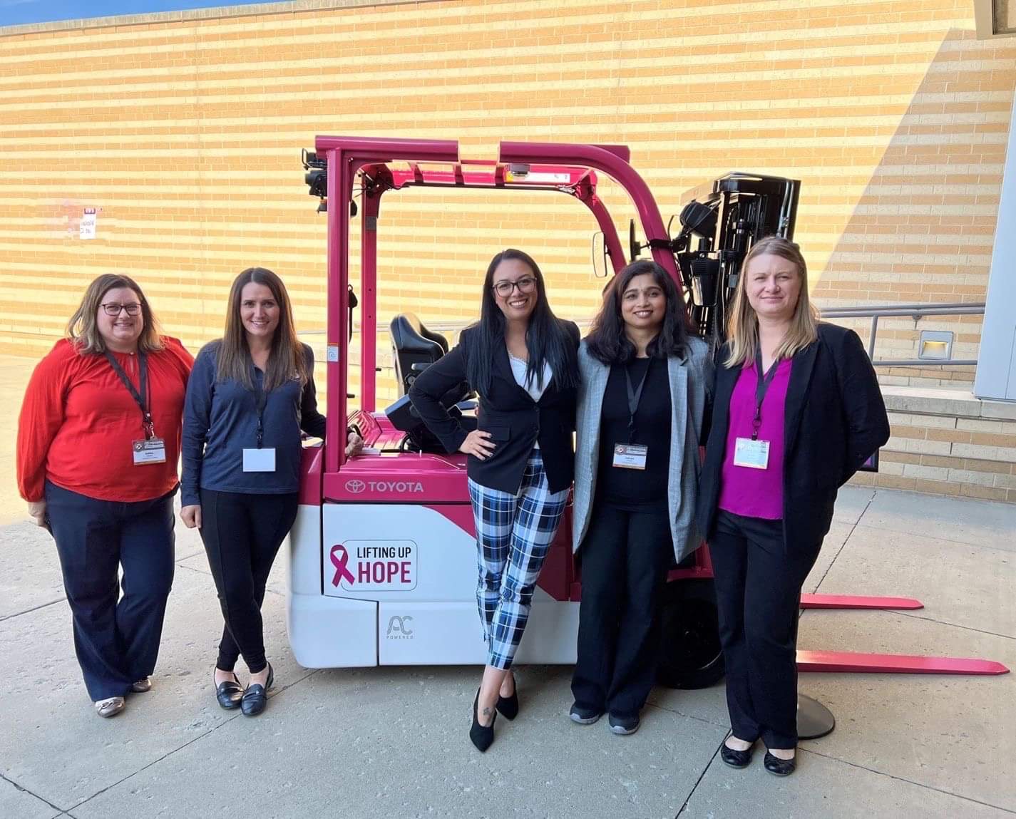 丰田物料搬运的创始原则是为社会做出贡献,我很自豪能够为一家找到不同方式对重要事业产生影响的公司工作。我们都知道有人受到乳腺癌的影响,所以这次拍卖不仅仅是创造一辆粉红色的叉车。它向我们的员工、他们的家人和我们的经销商表明,我们热衷于支持像 Susan G. Komen 这样改变世界的事业。这是我们在印第安纳州哥伦布市的同事共同努力的结果,看到这么多人参与制作这辆叉车并推动拍卖,这很特别。