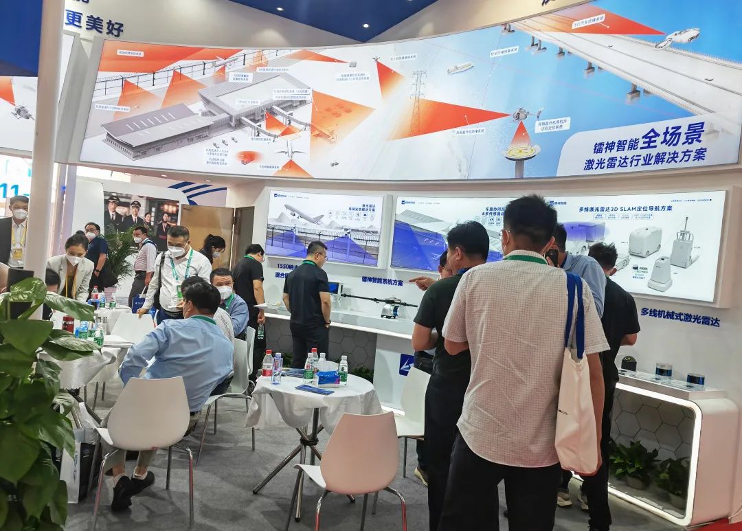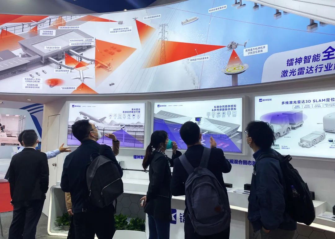 镭神智能的展位展出了应用于民用航空领域的激光雷达智慧机场全场景应用解决方案,吸引了众多专业人士驻足观看。