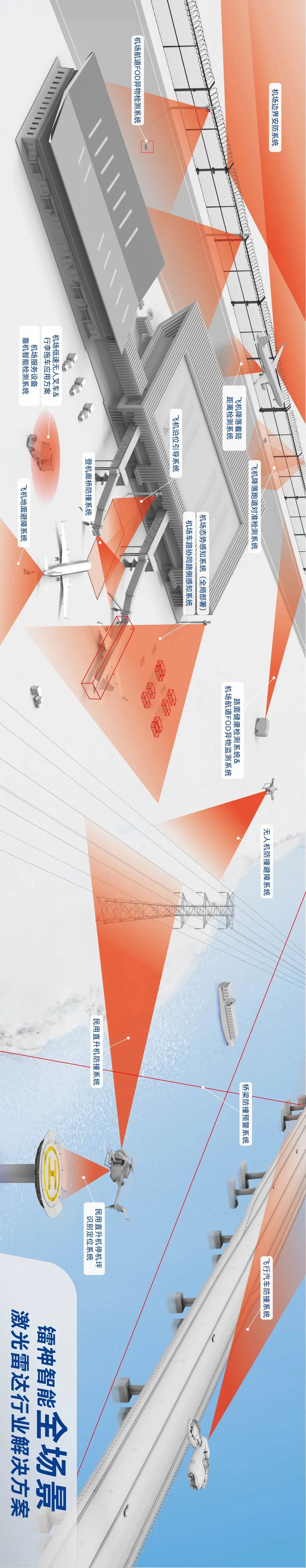 镭神智能激光雷达智慧机场全场景应用解决方案可全方位的应用于民用航空的各个场景,本次展会展出了以下方案: