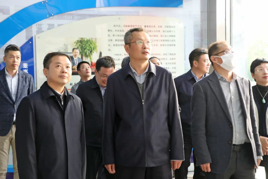 在天能控股集团董事长张天任的陪同下,尤勇一行深入塑业、隔板、精工车间了解生产经营和智能制造发展情况。张天任董事长介绍道,园区于2018年开工建设,目前已建成投产项目6个,分别是高分子改性新材料项目、高性能电池用新型复合材料建设项目、新能源塑件项目、智能装备和AI孵化中心项目、高性能聚合新材料项目、新能源AI创新制造中心项目。天能持续擦亮绿色智造名牌,为助力“双碳”目标、企业高质量发展注入强劲动能。